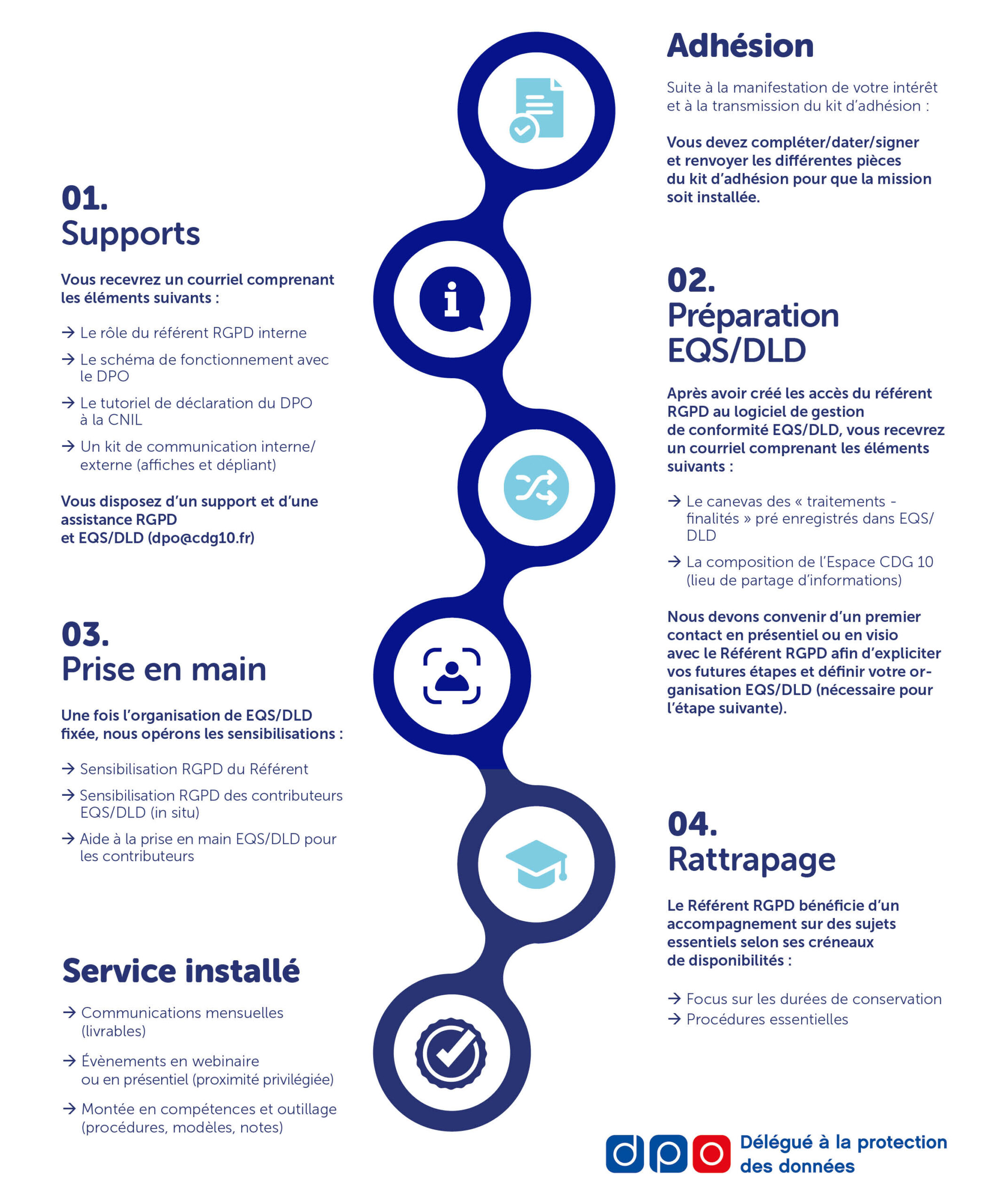 - La désignation du CDG 10 en tant que Délégué à la Protection des Données (DPO) personne morale auprès de la CNIL pour vous accompagner et vous conseiller dans votre démarche de conformité